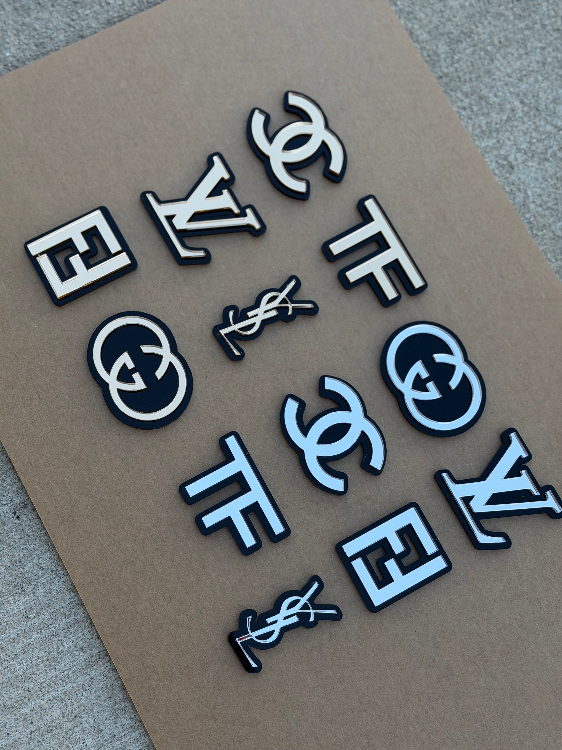 Elevate your dessert presentation with our Luxury Designer Acrylic Cupcake and Cake Charms. Each set includes 6 exquisite charms, featuring one each of the following iconic designer brands: Louis Vuitton, Chanel, Tom Ford, YSL, Fendi, and Gucci.