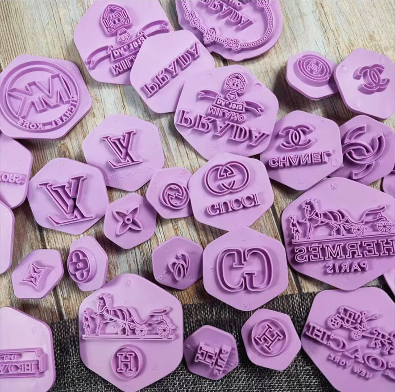Create luxury-inspired treats with our Designer-Inspired Fondant Embossers, perfect for elevating cakes, cupcakes, cookies, and edible décor. 7 elegant patterns inspired by iconic high-fashion houses including Chanel-style, Prada-style, Louis Vuitton-style, Michael Kors-style, Dior, Gucci and Hermès-style designs, adding a high-end finish to your confections.
